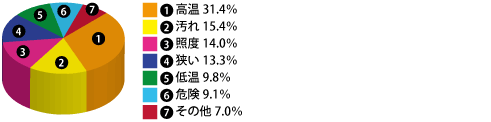 「高温」31.4%で最も多く、次いで「汚れ」15.4%、「照度」14.0%でした。
