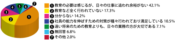 「教育の必要は感じるが、日々の仕事に追われ余裕がない」が42.1%と約半数を占めました。次いで「教育など全く行われていない」17.3%でした。