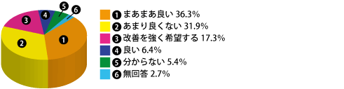「まあまあ良い」36.3%で最も多く、「あまり良くない」31.9%、次いで「改善を強く希望する」17.3%でした。
