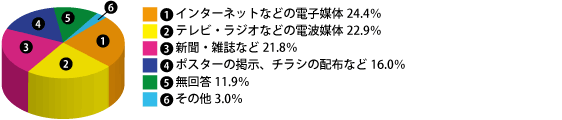 「インターネットなどの電子媒体」が24.4%で最も多く、「テレビ・ラジオなどの電波媒体」22.9%でした。